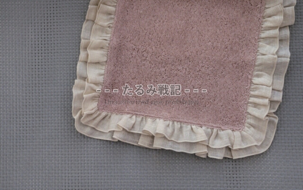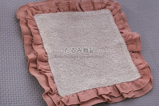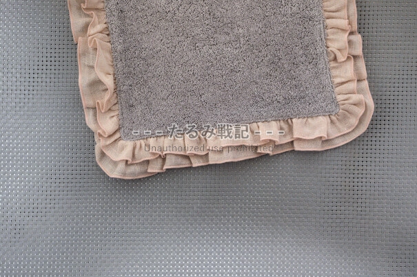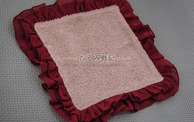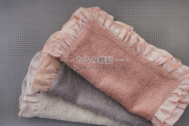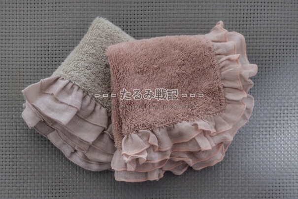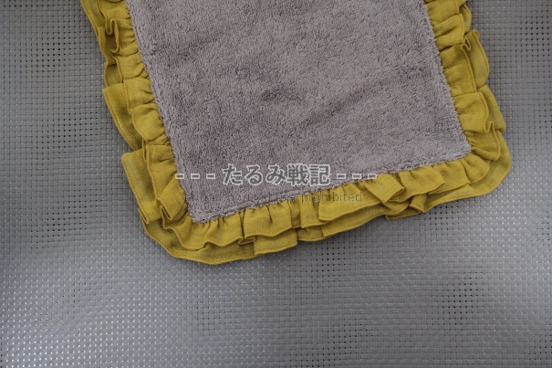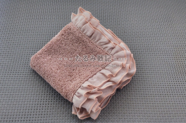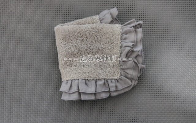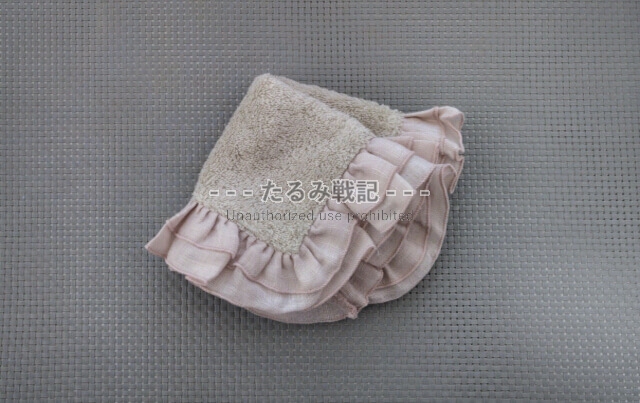 気になる点もあります。まず、仕方ないことなのですが、本体タオルの端にフリルを縫い付けている部分が厚く、なめらかではないです。そしてフリルのボリュームがあるので、かさばります。ミニミニバッグには入りません。