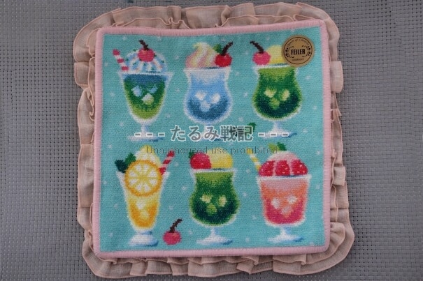 もともとの展開サイズはフリル込みで30センチ以上。ショップさんの記載がまちまちなのですが、35~37センチくらいが多いようです。そもそもはブランドが家庭用品として展開していると推測されますのでもっともなのですが、ハンカチ代わりとしてはちょっと大きいのではと思っていました。大きなバッグの中で目隠し的に使うのには向いているサイズですけどね。