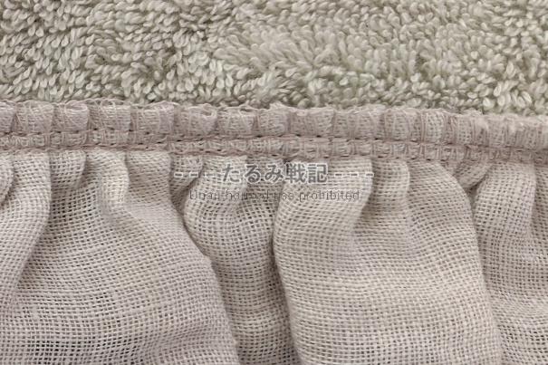 本体はごく普通にタオル地なので、パイルがあります。ここに引っかけてしまうと糸が出てしまいます。