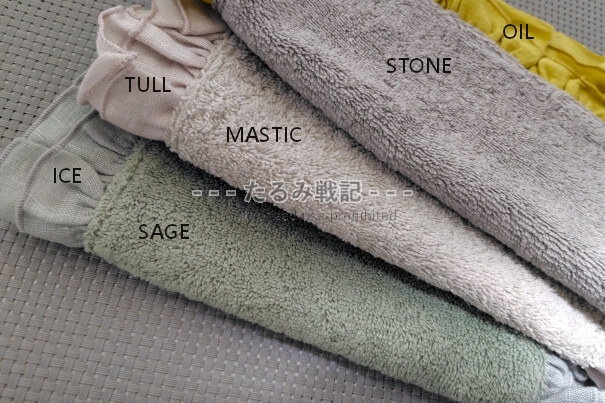 近沢レースとフェイラーは同等かもしれません。フェイラーは洗濯で変化しますが使っているときのダメージはそんなに感じませんよね。もっとも傷みやすいというか、タオル地のパイルを引っかけるおそれがあるのがボルゴデレトヴァーリです。