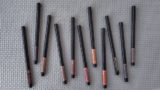 ここで突如の新顔登場。わかりにくくてすみませんが、一番右にブルーのホルダーのアイライナーを加えました。この頃愛用していたデジャヴのラスティンファインクリームペンシル(密着アイライナー)のピュアブラウンです。芯の先が楕円だったので、不器用な私には描きやすかったのです。が、「密着アイライナーと謳っているわりには落ちる」と思うようになり、もっとキープ力があって落ちにくいアイライナーを探していて、それが上記の画像に出ているアイライナーたちになります。