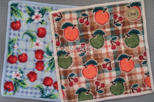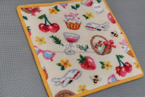 やはりマダムなイメージがあるからでしょうか。黒地のデザインが「フェイラー=おばさんっぽい」を醸し出す割合が一番強い気がします。たとえば、ピンクに可愛い食べ物モチーフでは「おばさんぽい」と思わない人も多いと思うので。