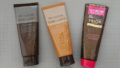 左のハイライトはけっこうギラギラしたメタリックな輝き。薄く乗せればそんなにギラギラではないですが、ぱあっときらめきが増します。真ん中のオーガズムは「シマ―に輝くゴールドパールを肌に溶け込むピーチピンクに絶妙にブレンドした」という色。薄づきで、イエベの私には肌なじみがいいです。2度重ねると本当に血色がよい頬になります。右のオーガズムXは赤みがあり発色がめちゃくちゃいいです。けっこう濃いともいえます。